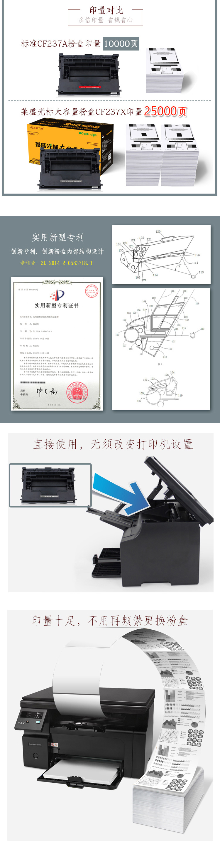 萊盛光標(biāo) LSGB-CF237X 硒鼓粉盒(4支裝)大容量HP LJ Enterprise M607/M608/M609 MFP M631/M632/M633