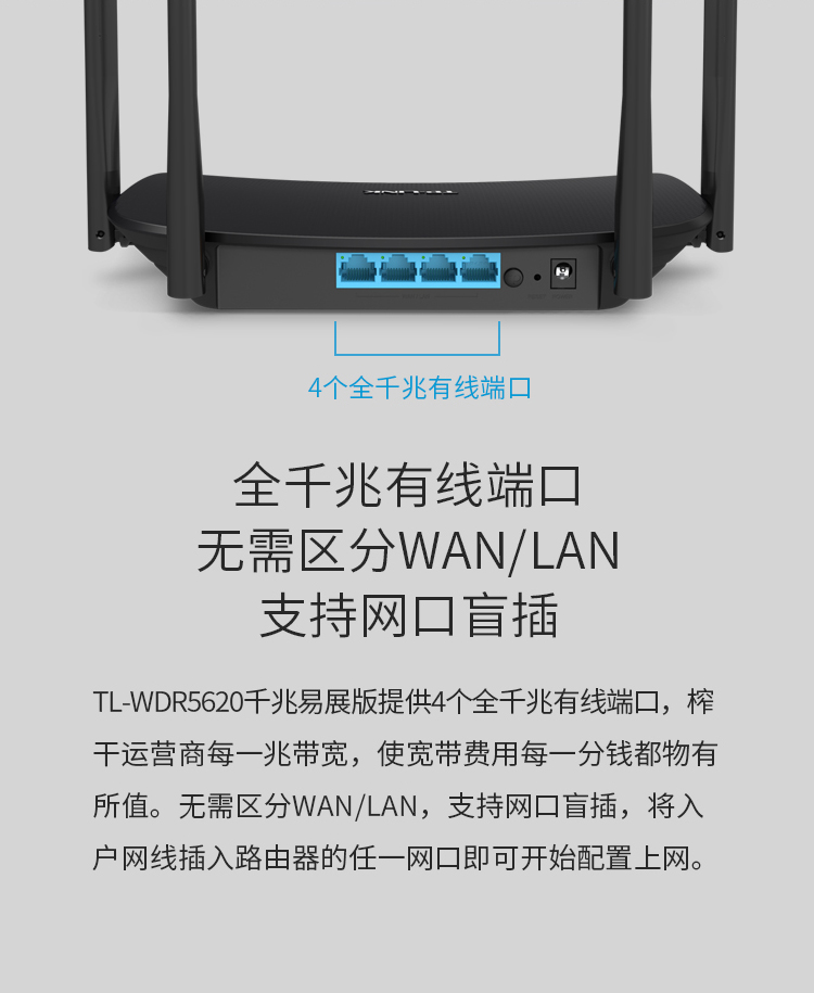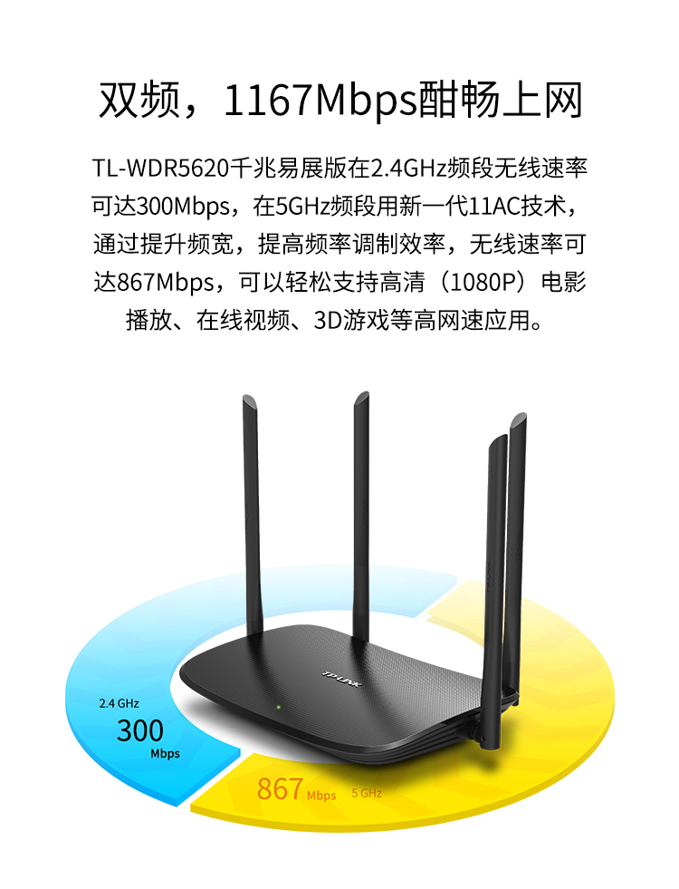 TP-LINK 千兆路由器 AC1200無線家用 5G雙頻WiFi WDR5620千兆易展版 高速路由穿墻 IPv6 配千兆網線