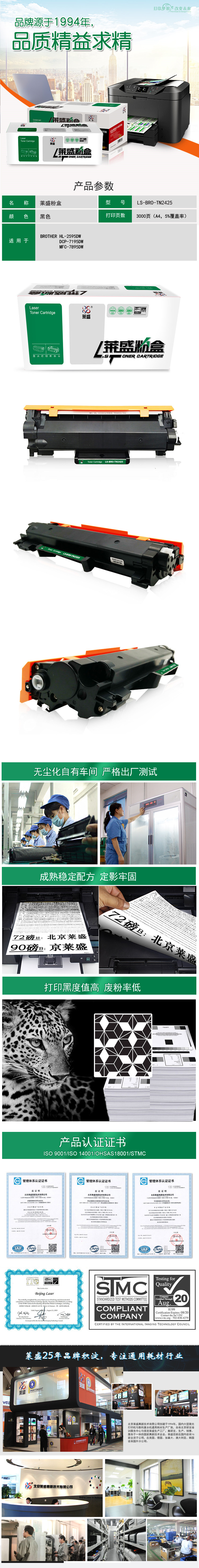 萊盛(laser) LS-BRO-TN2425粉盒 兄弟HL-2595DW,DCP-7195DW,MFC-7895DW