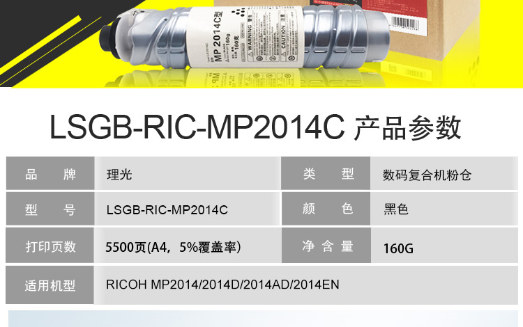 萊盛 光標(biāo)LSGB-RIC-MP2014C黑色粉盒適用于MP2014/2014EN/2014D/2014AD 黑色