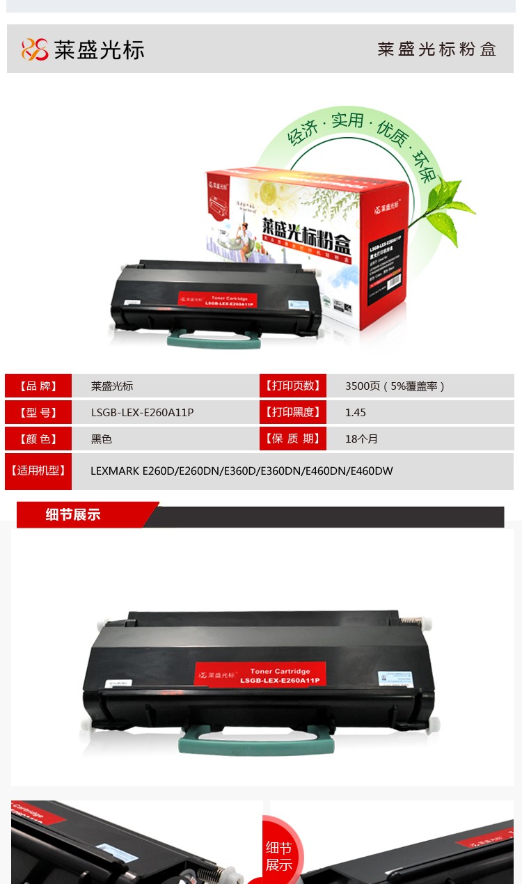 萊盛光標(biāo)LSGB-LEX-E260A11P粉盒 萊盛光標(biāo)利盟E260D/E260DN/E360D/E360DN/E460DN/E460DW粉盒