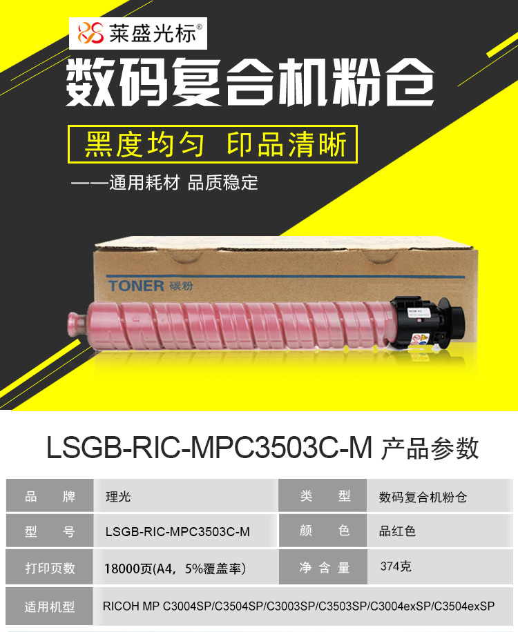 萊盛 光標 LSGB-RIC-MPC3503C-M硒鼓/粉盒適用于RICOH MP C3004SP/C3504SP/C3003SP/C3503SP/C3004exSP